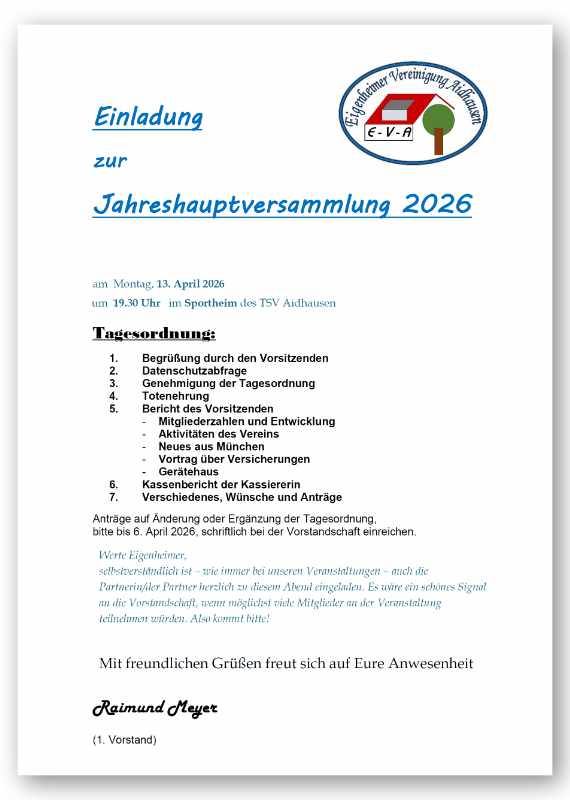 am Montag, 13. April 2026 um 19.30 Uhr im Sportheim des TSV Aidhausen
